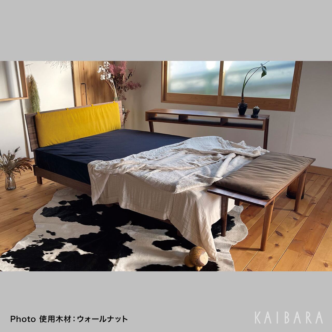 主材:ウォールナット無垢材・集成材/自然塗装仕上げ/サイドフレーム突板/スノコ