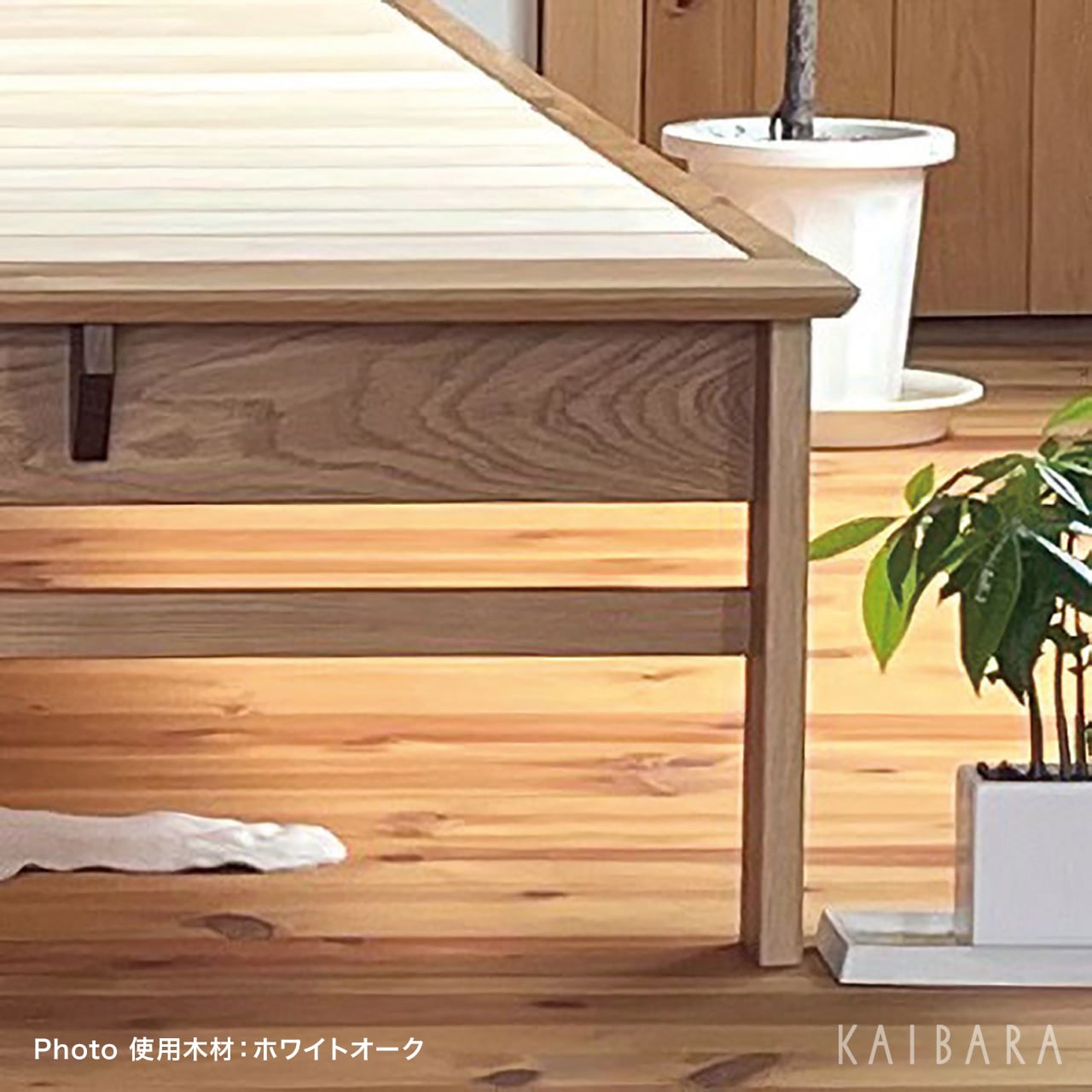 主材:オーク無垢節あり材・オーク集成節あり材/ウレタン塗装仕上げ/桐スノコ(自然塗装仕上げ)